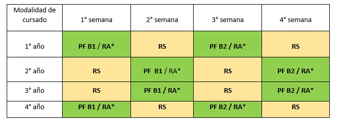 - RS: remoto sincrónico todos los espacios curriculares.